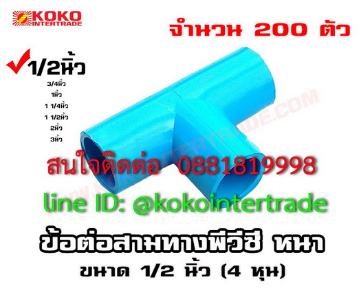 สามทางพีวีซี หนา ขนาด1/2นิ้ว จำนวน200อัน |