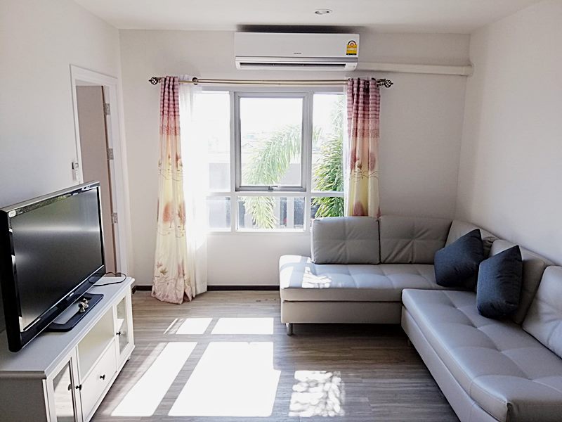 ให้เช่าคอนโด พื้นที่ใช้สอย 56.42 ตร.ม. 2 ห้องนอน 2 ห้องน้ำ 1 ห้องรับแขก 1 ครัว สามารถจอดรถได้ 3 คัน
