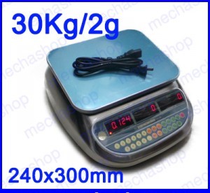 ตาชั่งดิจิตอล เครื่องชั่งกันน้ำ 30kg ความละเอียด 1g รุ่น WP-ACS Counting Scales แท่นชั่ง240x300mm |