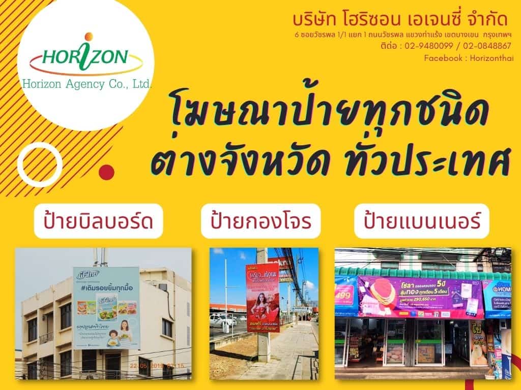 รายละเอียด: บริษัท โฮริซอน เอเจนซี่ รับทำสื่อโฆษณาต่างจังหวัดและกรุงเทพฯ
