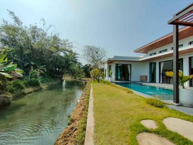 ราคาเพียง 7.9 ล้าน #พูลวิลล่าริมน้ำ #สารภี 159.8 ตรว. ใหม่เอี่ยม พูลวิลล่าชั้นเดียว #สไตล์โมเดิร์น บ
